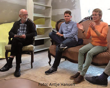 „Sett di dal und vertell mal!“ ist die freundliche Aufforderung zum Gespräch. Wir vom Förderverein wollen uns mit einer Informationsveranstaltung an der Demenz-Woche 2022 beteiligen und haben es zum Motto einer Gesprächsrunde gewählt. Die Gäste nehmen auf dem Sofa Platz und werden von Peter Nissen (Bordelum/Hamburg) interviewt. Auf Plattdeutsch, so wie das Thema der Alzheimer Gesellschaft Nordfriesland „Tosamen blieven“. Jeder ist eingeladen. „Sett di dal un hör to!“ Am 23.09.2022 13:30 in Drelsdorf Hof Golbers. (nachträglich veröffentlicht von Gerhard D.)